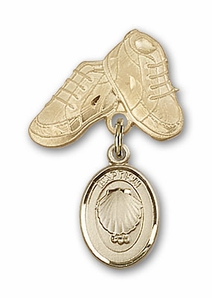 14kt Gold Baby Badge with Baptism Charm and Baby Boots Pin