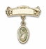 Gold Filled Baby Badge with Blue St. Christopher Charm and Arched Polished Badge Pin