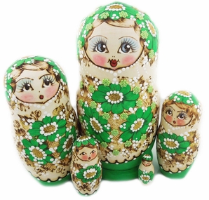 NEW Beaded Matreshka 5 Nested Linden Wood Hand Carved Hand Painted Nesting Doll 7"x3 1/2"
