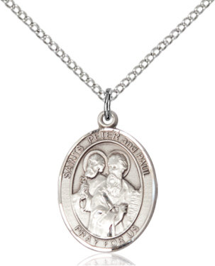 Sterling Silver St. Peter Pendant 18 inch Sterling Silver Curb Chain