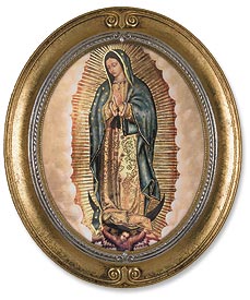 This traditional Catholic image is enhanced with a classic, gold finish oval frame.