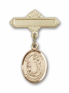 14kt Gold Baby Badge with St. Cecilia Charm and Polished Badge Pin