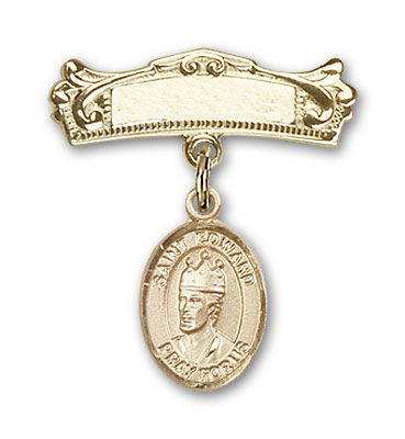14kt Gold Baby Badge with St. Edward the Confessor Charm and Arched Polished Badge Pin