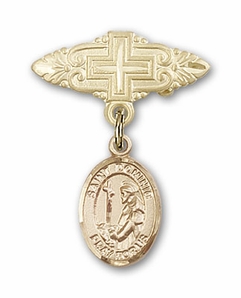 14kt Gold Baby Badge with St. Dominic de Guzman Charm and Badge Pin with Cross