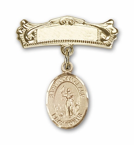 14kt Gold Baby Badge with St. Joan of Arc Charm and Arched Polished Badge Pin