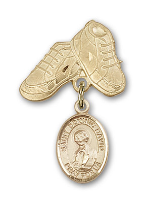 Gold Filled Baby Badge with St. Dominic Savio Charm and Baby Boots Pin