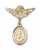 Gold Filled Baby Badge with St. John of the Cross Charm and Angel w/Wings Badge Pin