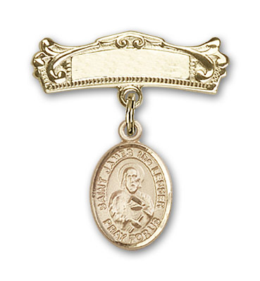 Gold Filled Baby Badge with St. James the Lesser Charm and Arched Polished Badge Pin