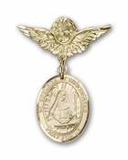14kt Gold Baby Badge with St. Edburga of Winchester Charm and Badge Pin with Cross