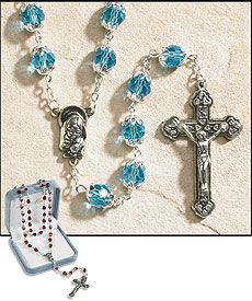 March (Aquamarine) Double Capped Birthstone Rosary