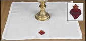 Inspired by fine art and classic images of the Sacred Heart, artists have captured its essence in this set of beautifully embroidered 100% white linen, eyelet edged Mass linens that include a Purificator, Corporal, Chalice Pall and Lavabo Towel.